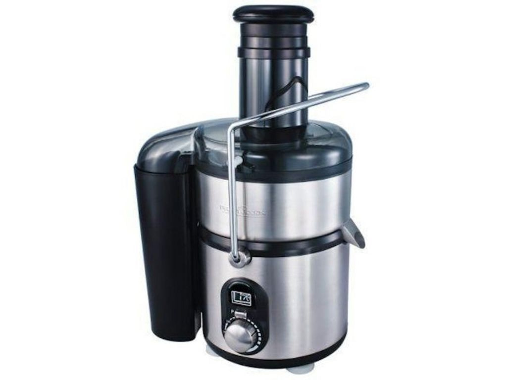 AE1001 Professional juicer with stainless steel housing. Heavy, durable Professional Long Life engine, max.1200 Watt. 9 adjustable speeds for soft and hard fruits, including turbo function. Extra wide filling opening (75 mm). Press without reducing whole apples, carrots and other fruits within seconds.