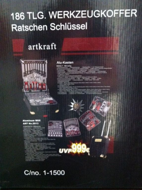 Beautiful Aluminum Trolly's completely filled with 186 piece tool. Quality tools: chrome vanadium.