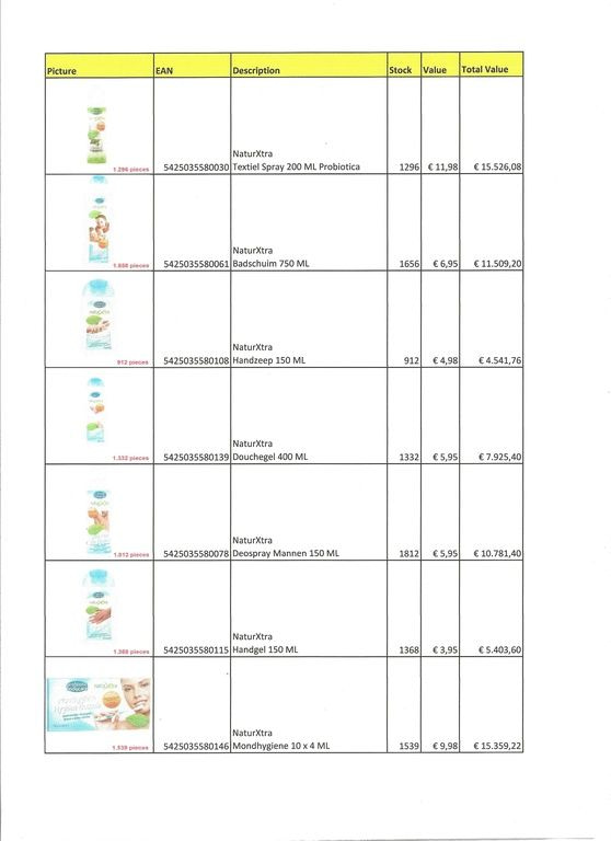 - 1,368 x NaturXtra Handgel 150 ML (EAN: 5,425,035,580,115)