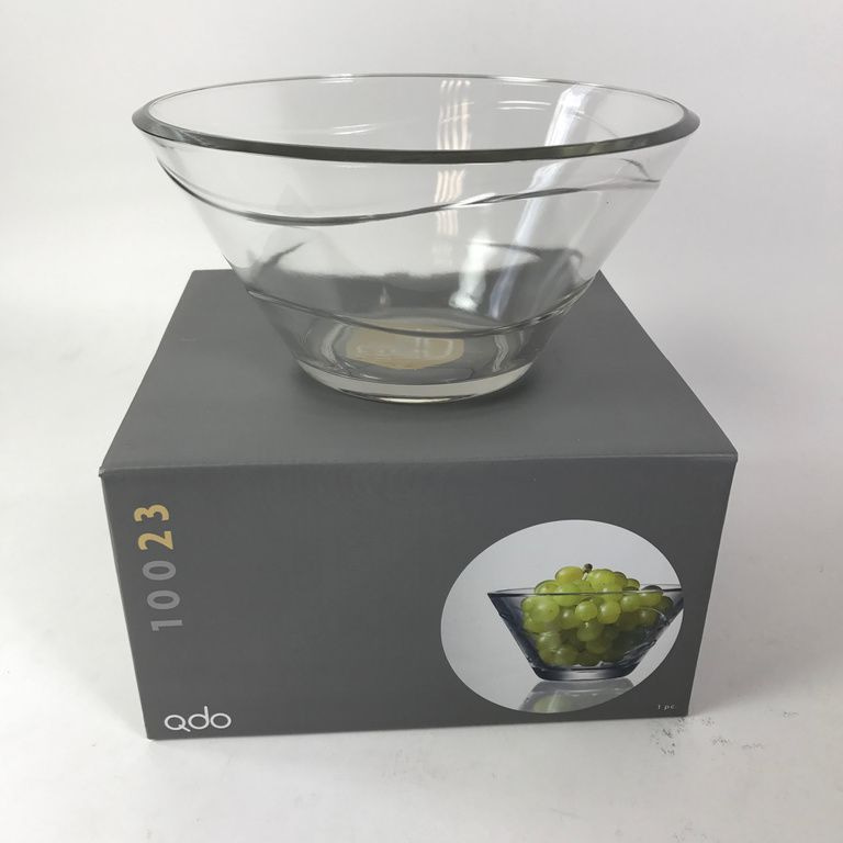 Glass fruit bowl Wave 2L. This glass fruit bowl of Qdo is made of clear glass and has a nice wave motif. This Qdo fruit bowl is ideal for storing fruit and other snacks. The wave pattern also ensures an elegant look. The fruit has a capacity of 2L and is dishwasher safe for easy clean.