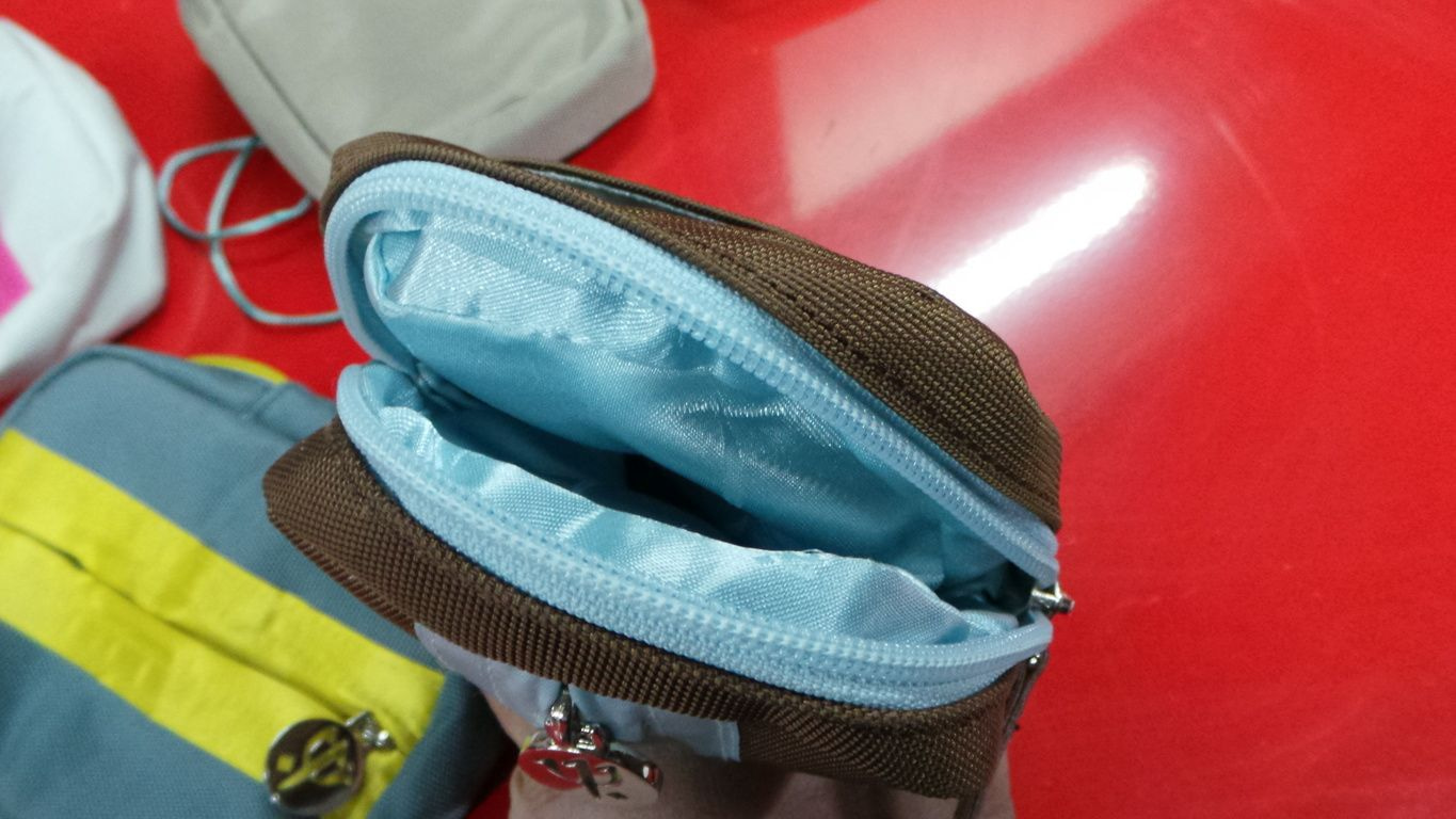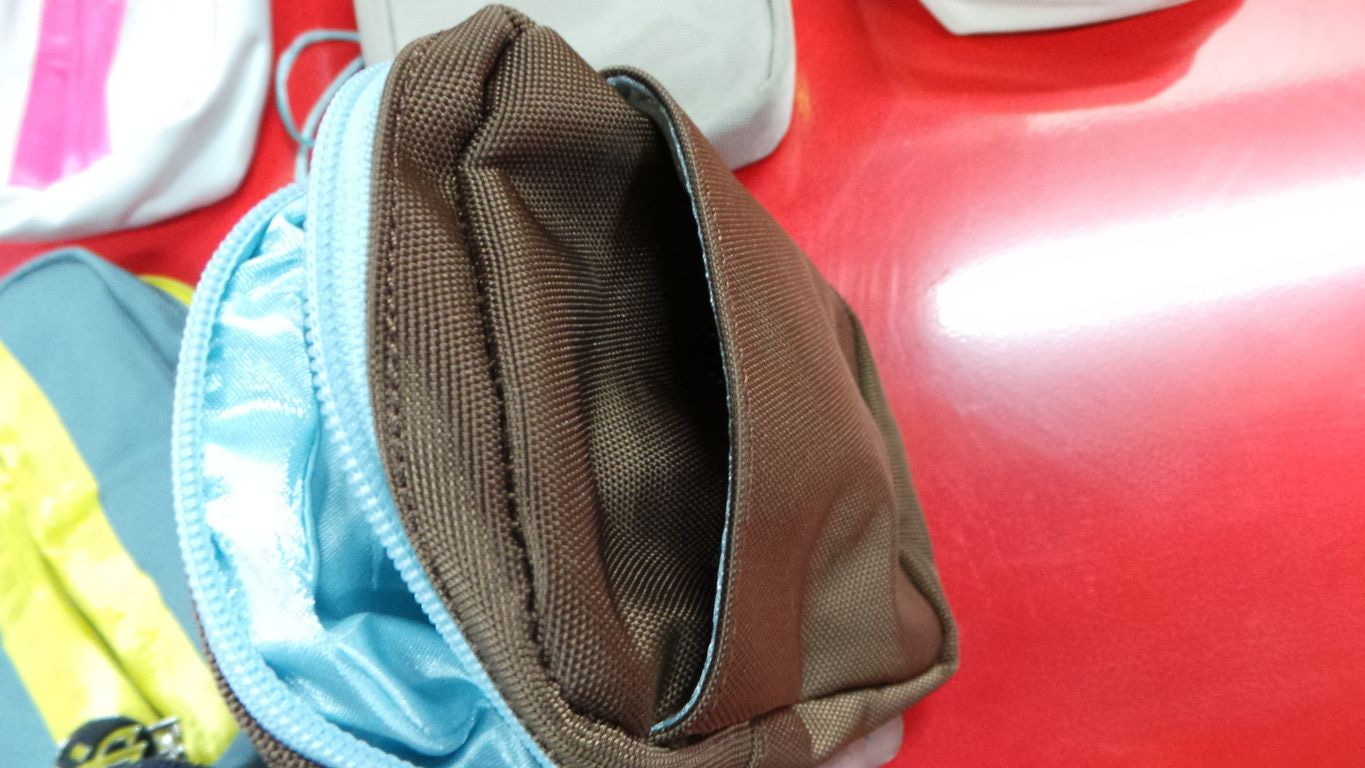 This handy little bag has a large zip pocket in the middle, a small zip pocket on the front and a pocket on the back. The cord is minibag even to the neck.