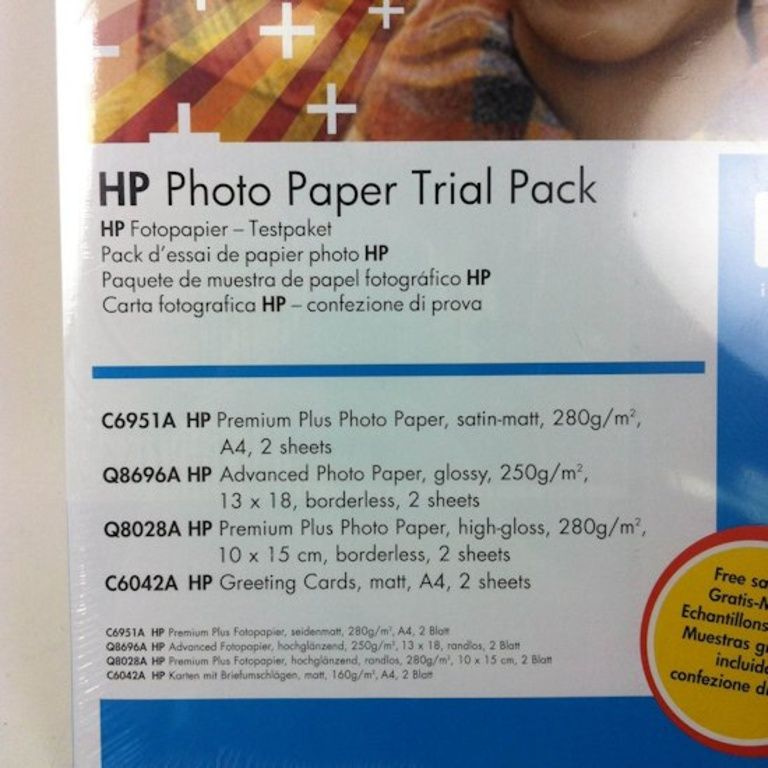- 2 Sheets (HP Q8028A) Premium Plus Photo Paper, high-gloss, 280g/m2, 10 x 15 cm borderless.
