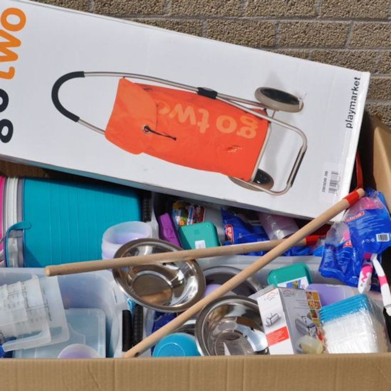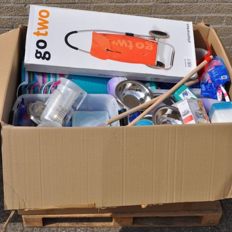 This pallet box contains: Oa Houseware, Toys, Tools, Office articles etc.