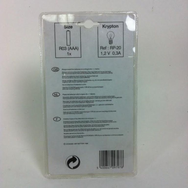 Works on: 1x AA battery.