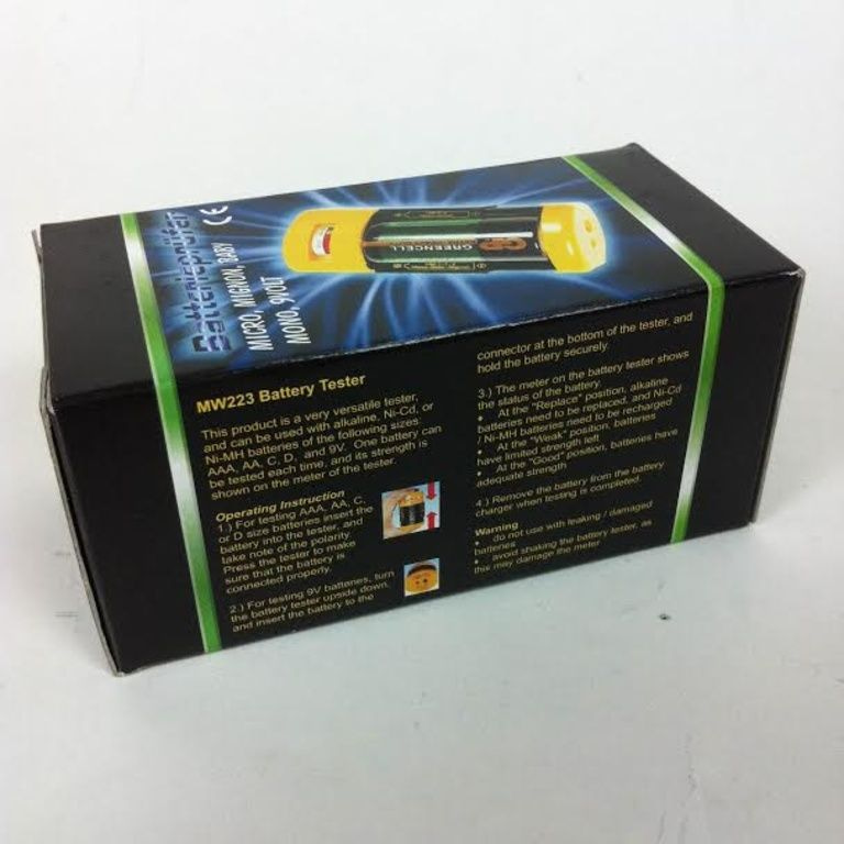 Suitable for testing: AA, AAA, C, D, 9V Batteries.