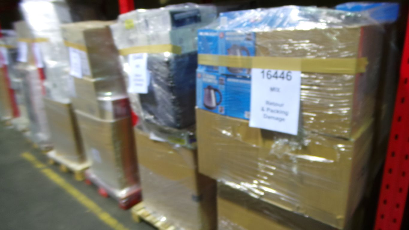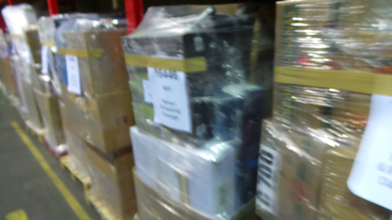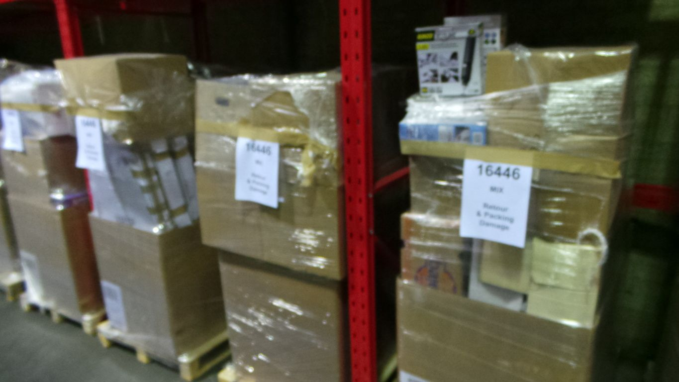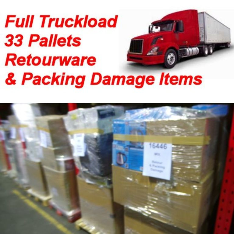 1 Truck Full of 33 Euro pallets full of various return and Packaging damage items. Oa Household Items, Toys, Garden articles etc.