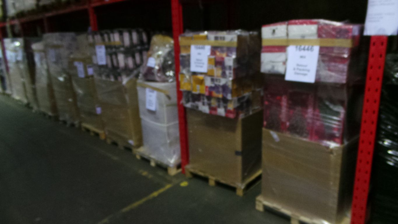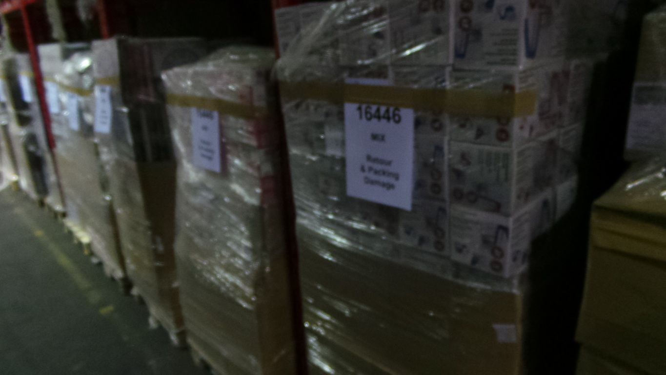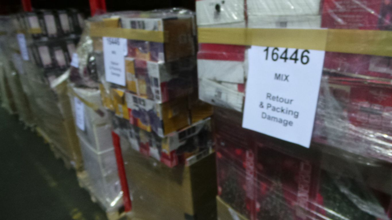 1 Truck Full of 33 Euro pallets full of various return and Packaging damage items. Oa Household Items, Toys, Garden articles etc.