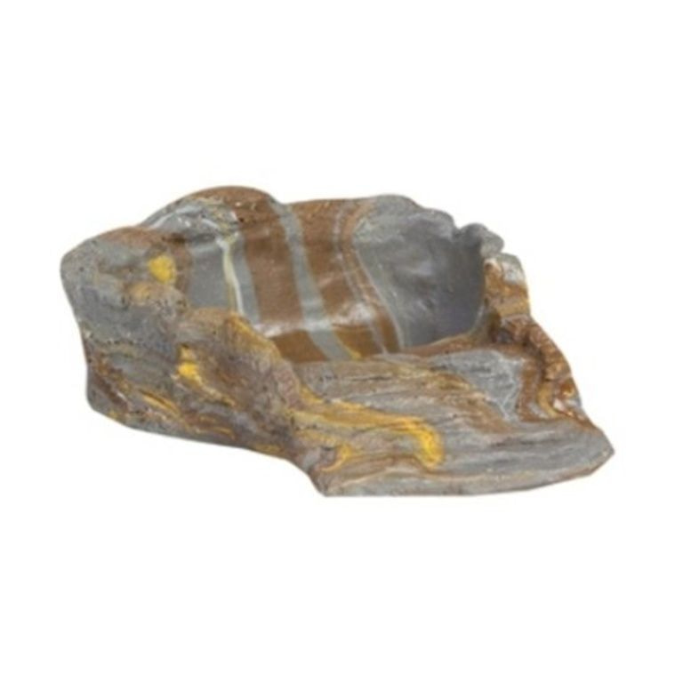 Maintenance friendly eating and drinking bowl for terrarium animals, made of polyresin. The staircase model provides good accessibility. The inside is made so that the animals can not hurt themselves, but can improve their skin.