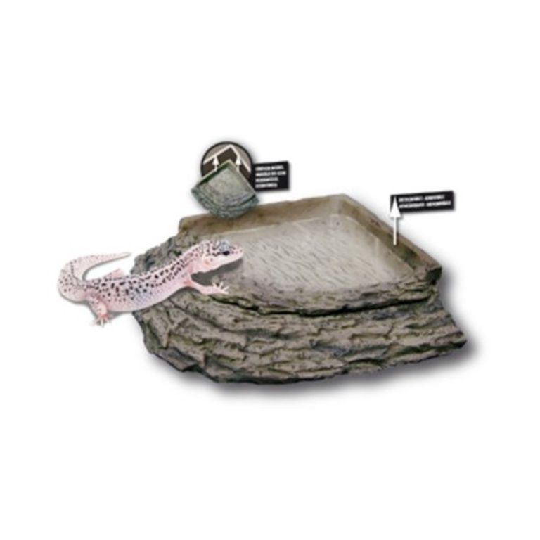 Maintenance-friendly dining and drinking bowl for terrarium animals from polyresin.Het staircase model provides good accessibility. The inside is made so that the animals can not hurt themselves, but can improve their skin.