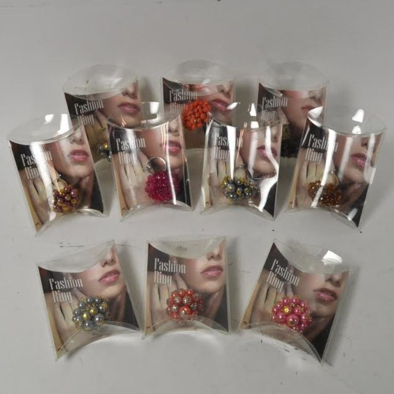 Rings packaged in blister packaging, these rings are adjustable in size.