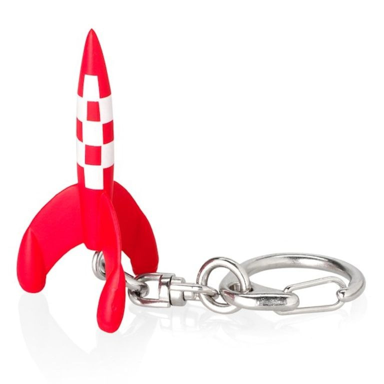 The rocket on this key chain is in the Tintin albums' Destination Moon "and" Explorers on the Moon. "