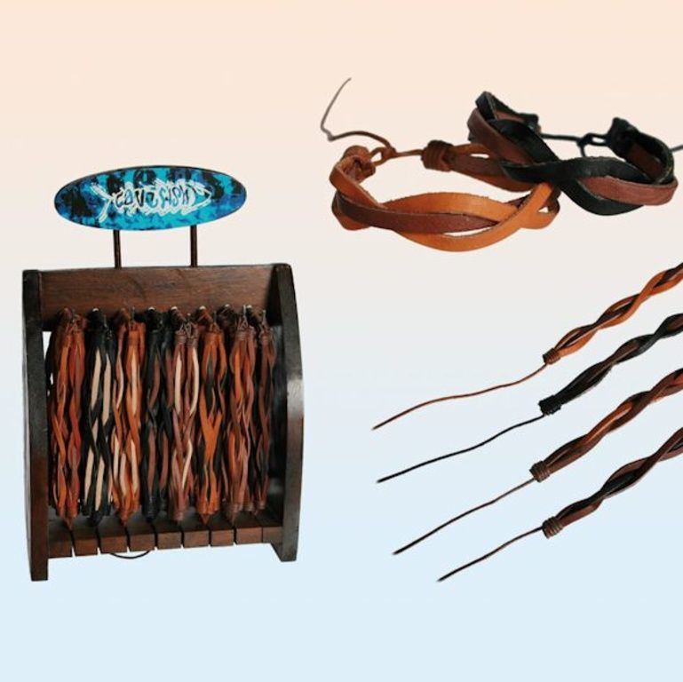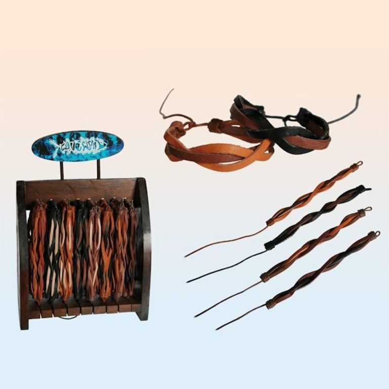 Each display contains 96 pieces and 8 different types of braided leather bracelets.