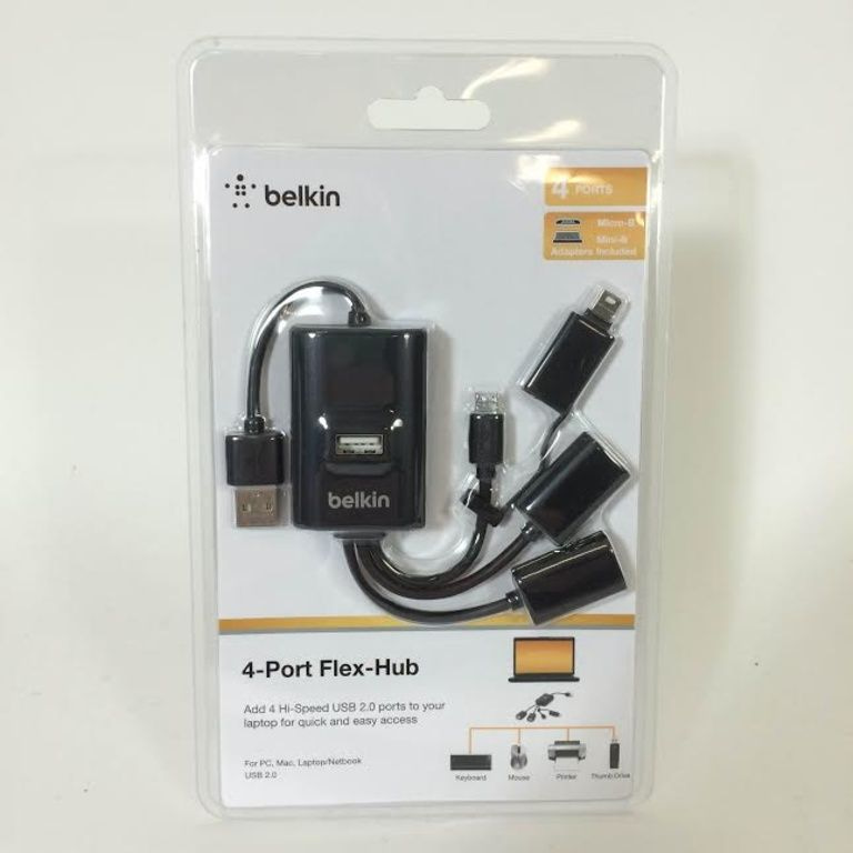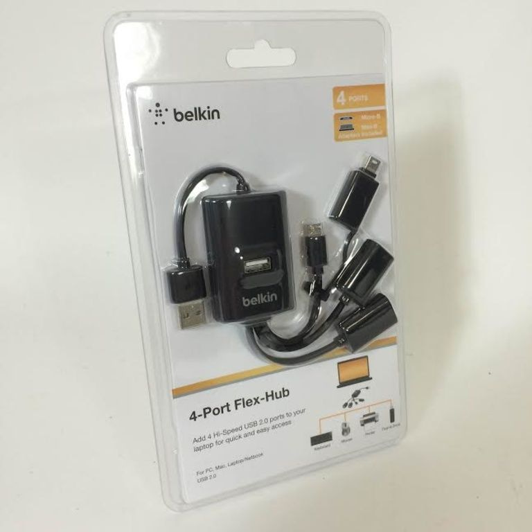 The Belkin Flexible USB Hub 'Calamari' adds five USB ports to your computer; three standard USB ports, a mini USB port and a micro-USB connector.