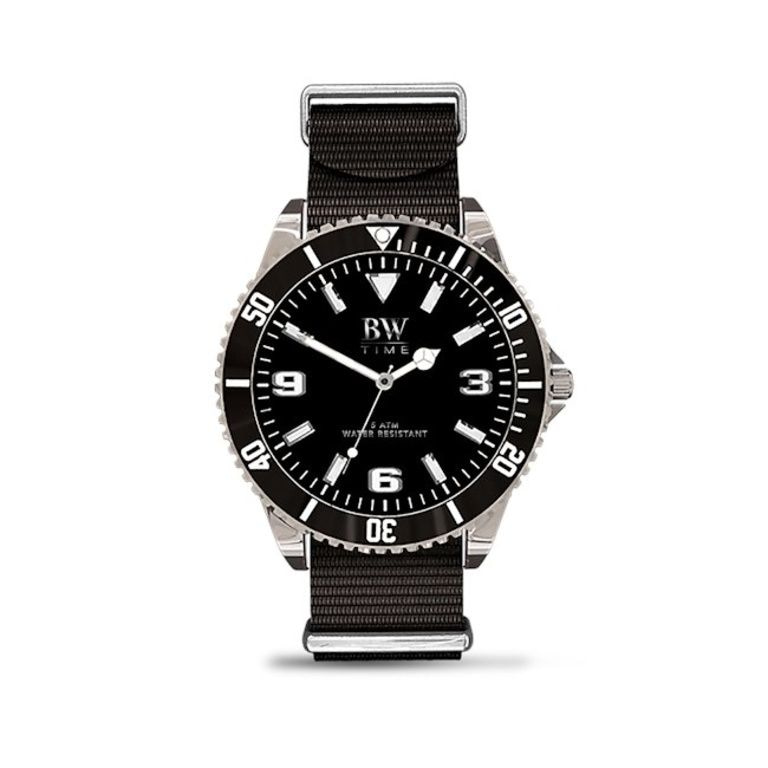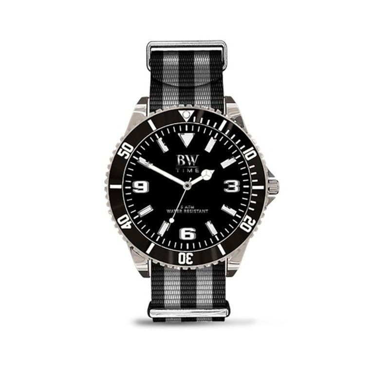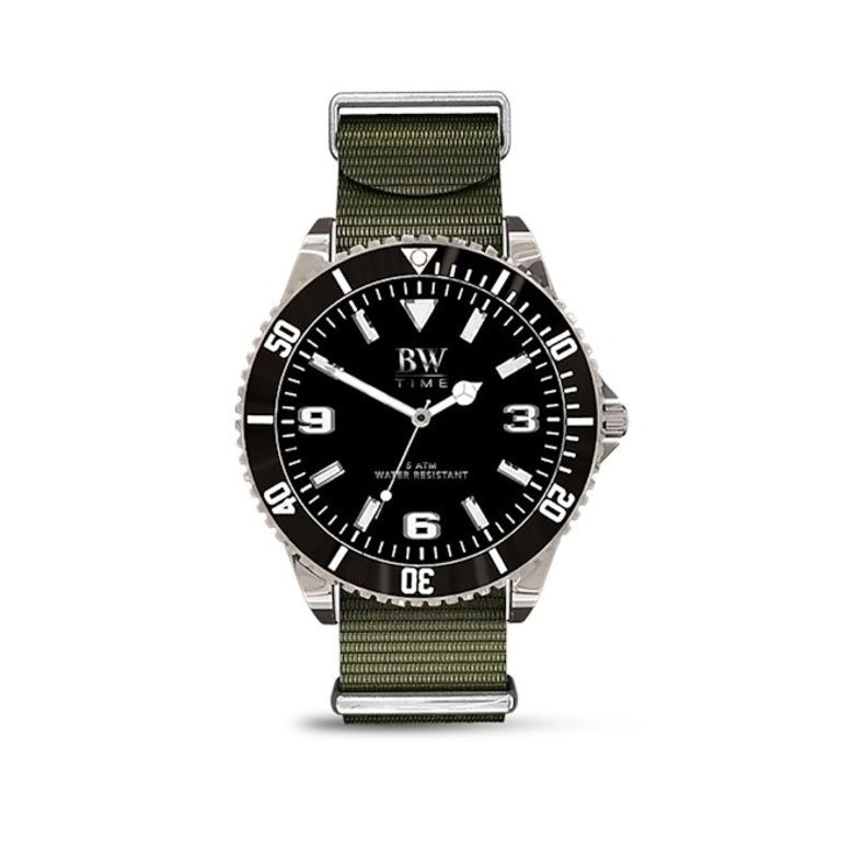 * Nato strap band in black, khaki and black / gray striped