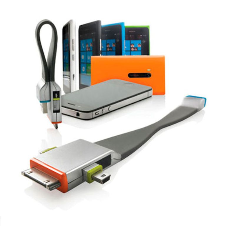 - Micro USB and mini USB plugs into a flexible IT travel accessory.