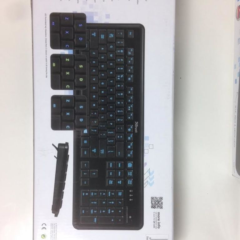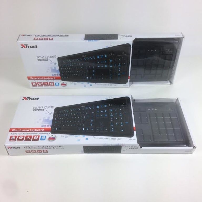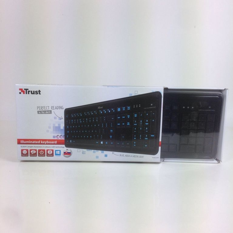 Keyboard with bright, LED-illuminated characters on the keys, perfectly legible in the dark.