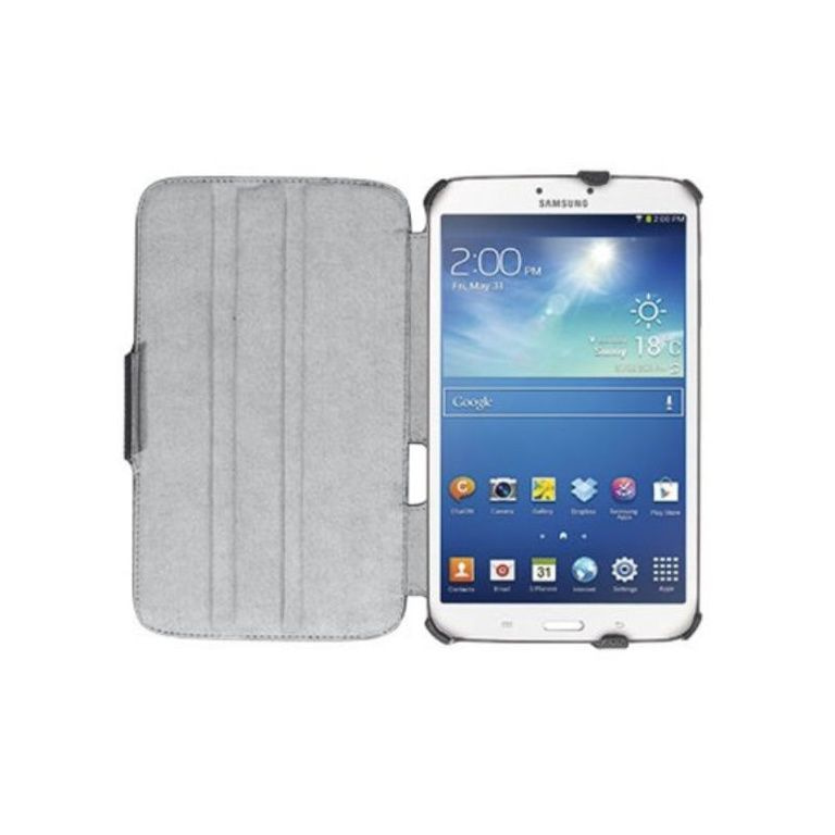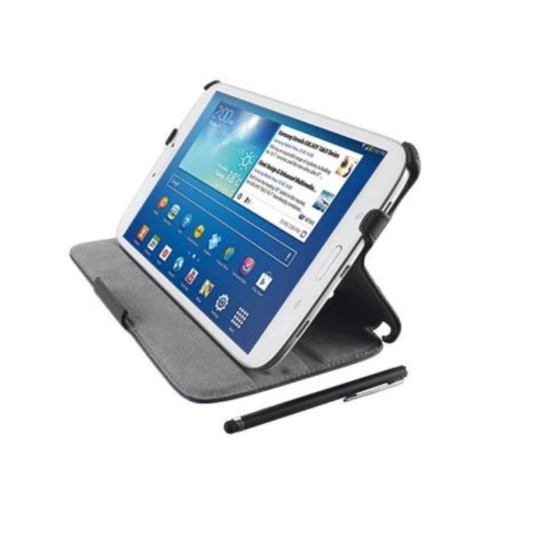 Elegant protective folio case for Galaxy Tab 3 8.0 with stylus pen and integrated look by default.