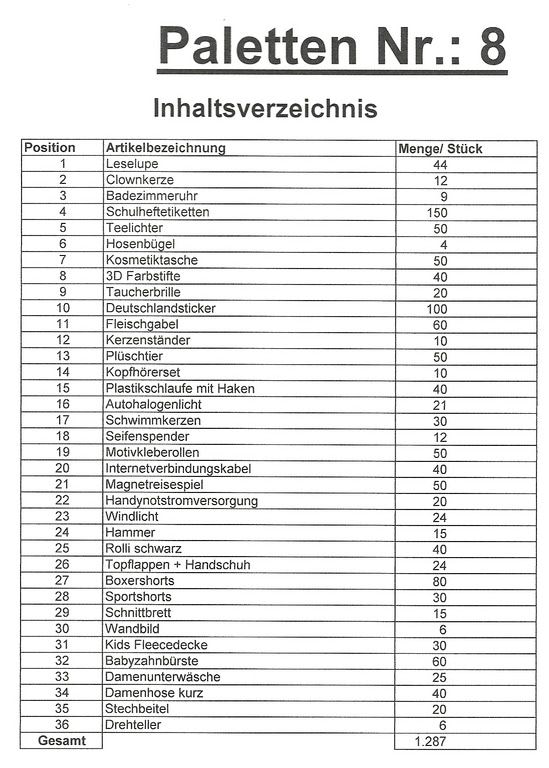 Contents pallet: 1,287 St. several articles!