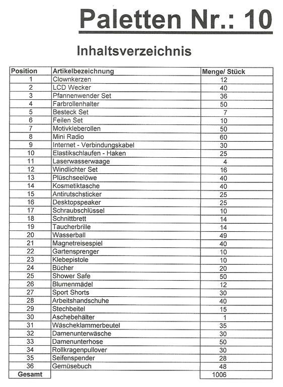Contents pallet: 1,006 St. several articles!