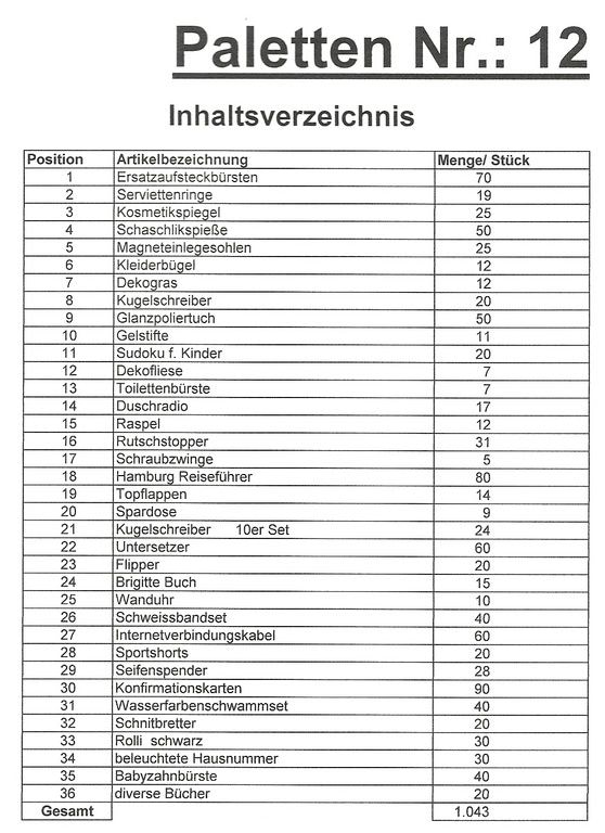 Contents pallet: 1,043 St. several articles!