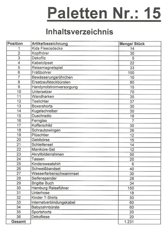 Contents pallet: 1,231 St. several articles!