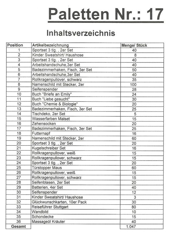Contents pallet: 1,047 St. several articles!