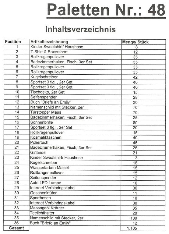 Contents pallet: 1,105 St. several articles!