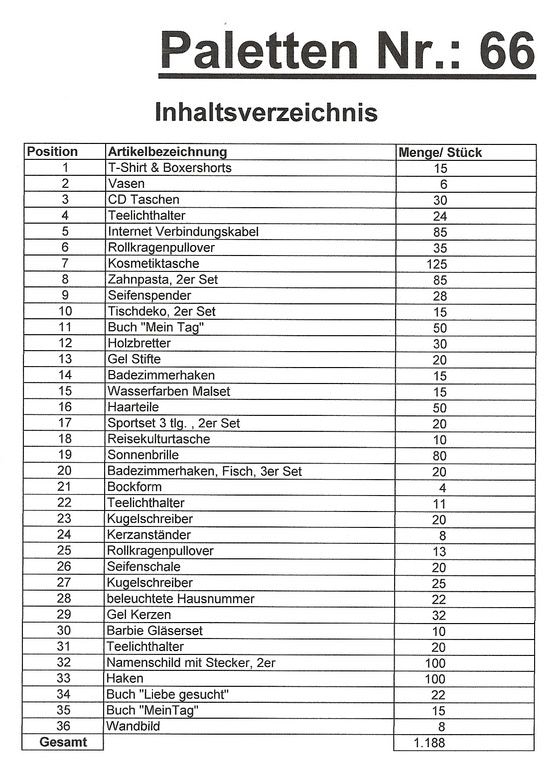 Contents pallet: 1,188 St. several articles!