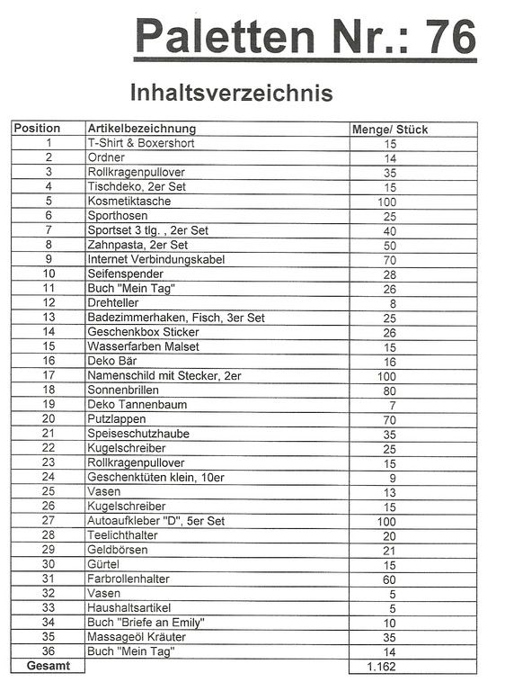 Content palette: 1. St. 162 different items!