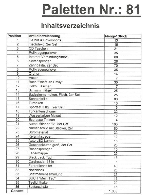 Contents pallet: 1,005 St. several articles!