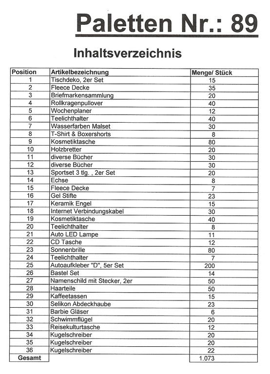 Contents pallet: 1,073 St. several articles!