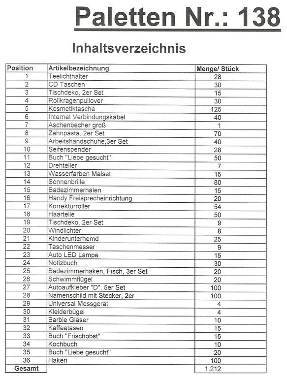 Contents pallet: 1,212 St. several articles!