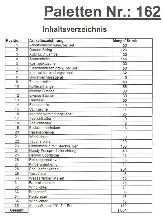 Contents pallet: 1,604 St. several articles!