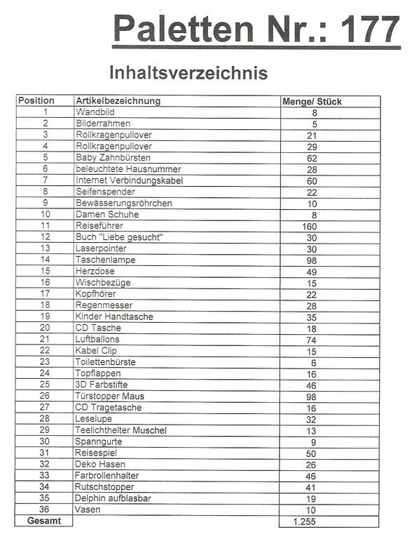 Contents pallet: 1,255 St. several articles!