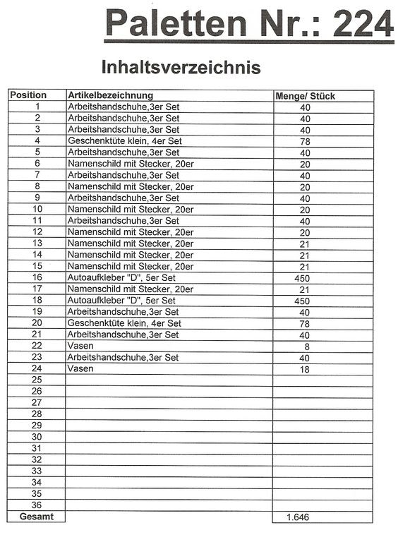 Contents pallet: 1,646 St. several articles!