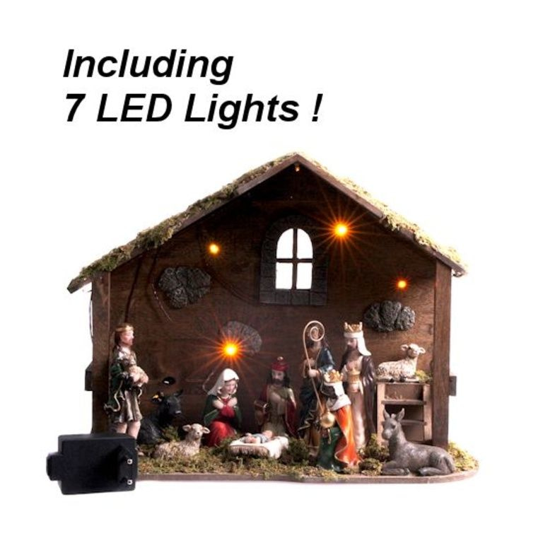 This Nativity features 7 LED lights.