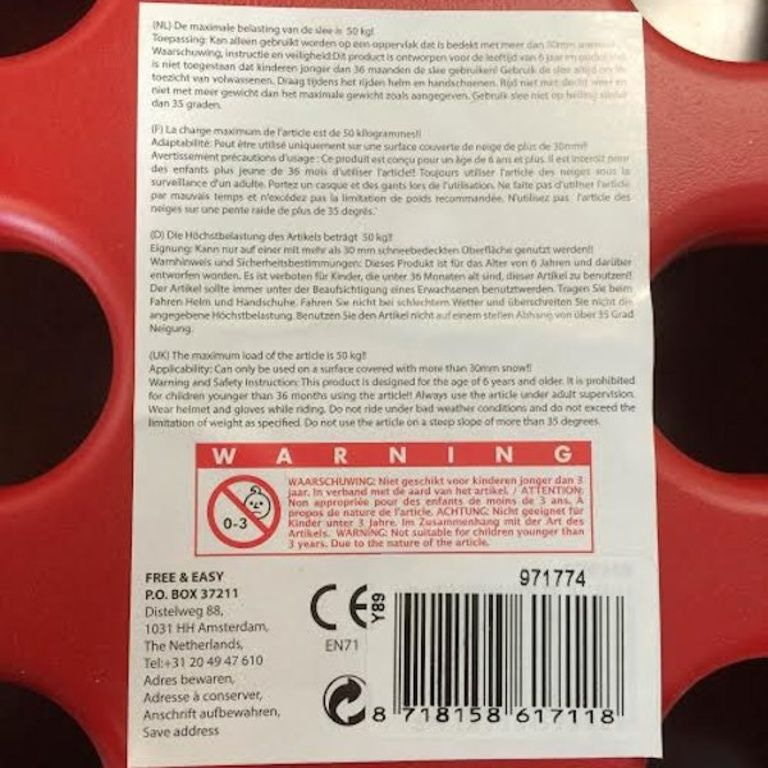 Sled dimensions: 88 x 47 x 25 Cm.