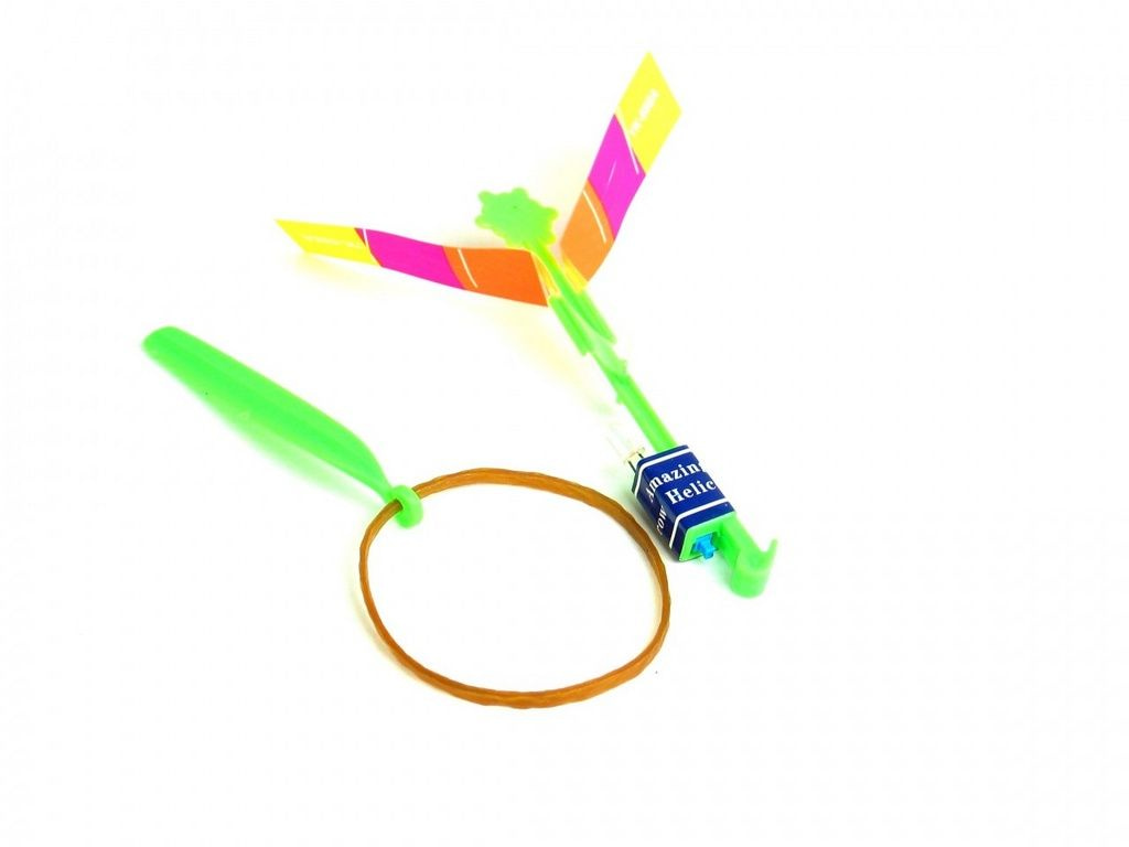 Hook the elastic behind the helicopter and pull it tight. Let him go and he shoots feet into the air. Helicopter is equipped with lighting, which gives a stunning effect in the dark.