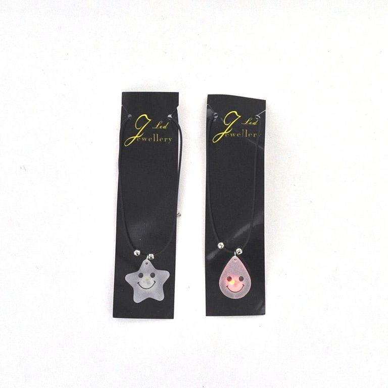 Cute necklaces with a figure on it. This figure includes a flashing light.