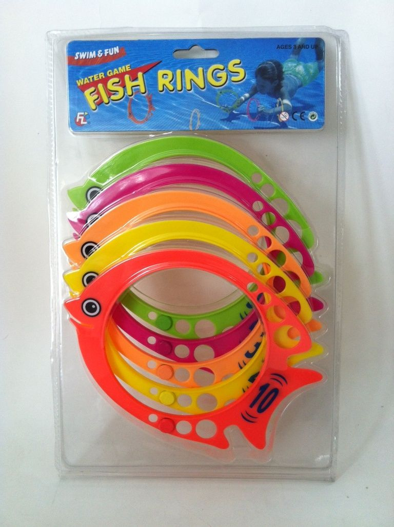 Throw the fish into the water or swimming and diving them. Each fish ring features points. For hours of fun in the pool.