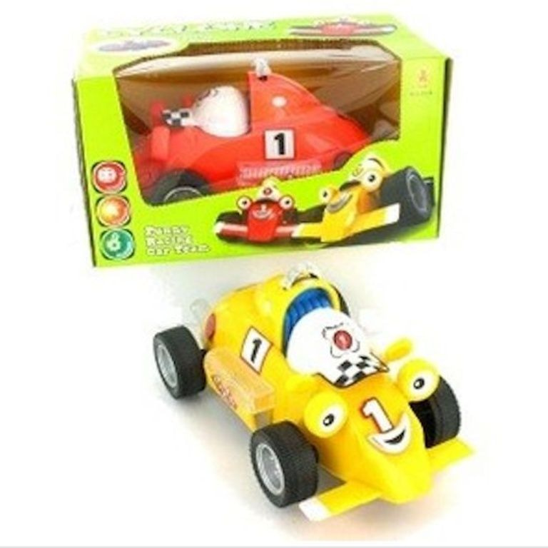 This bump and go race car driving course completes, when he hit something bots he runs the other way.