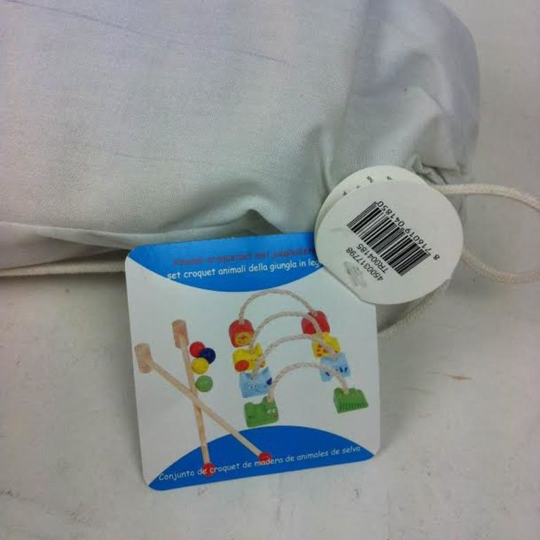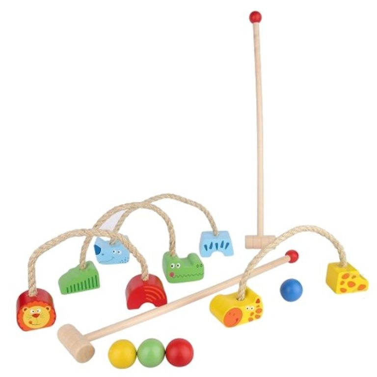 Cheerful wooden Croquet Playset, with happy jungle animals.