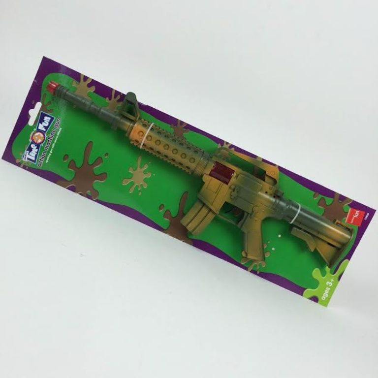 Large map of 49 x 15 x 3.5 cm with a big machine gun with light and sound.!