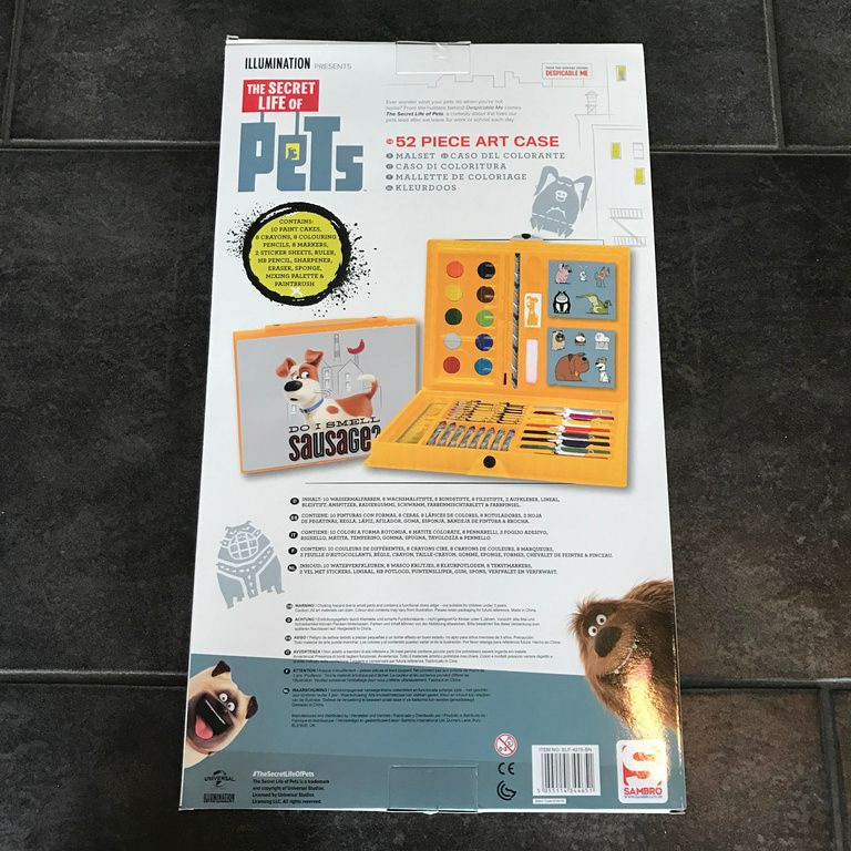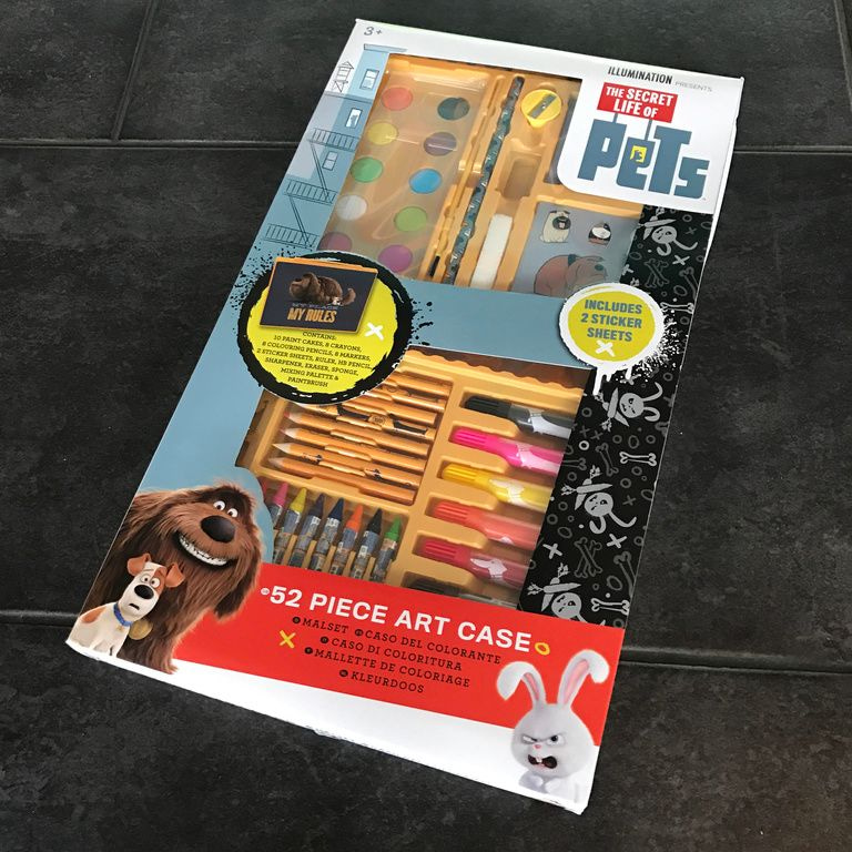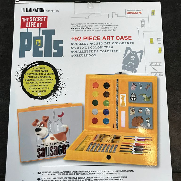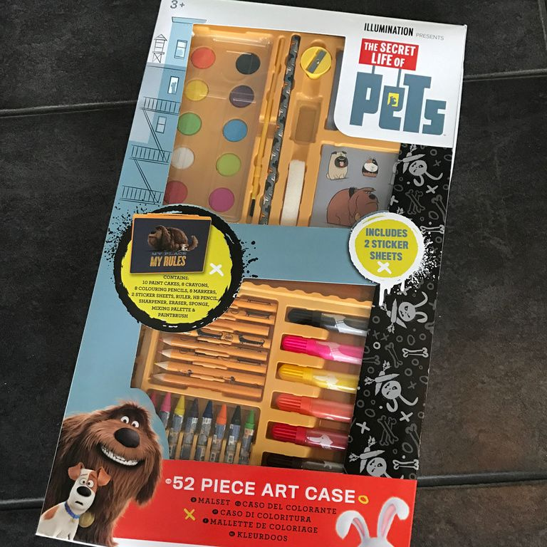 This color box is made up of 52 parts, pencils, felt pens, crayons, markers, pencil sharpener and stickers, etc. Packed in a storage case.